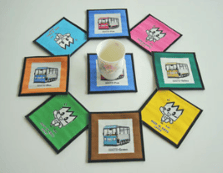 企業のロゴやマークをデザインしたコースター、お店のオリジナルコースターのご注文を承ります。ご希望のデザインにて制作いたします。